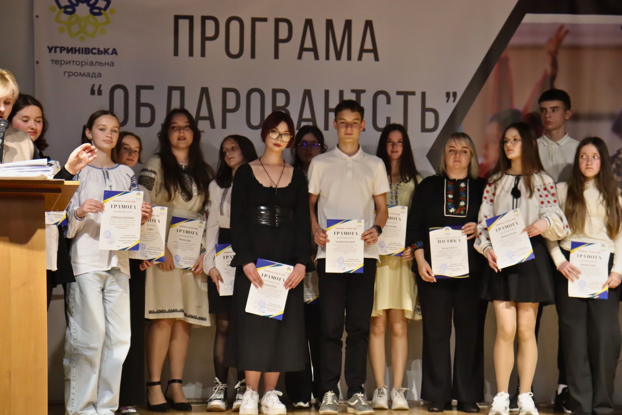 30 травня в УГРИНІВСЬКА ГРОМАДА вже вчетверте урочисто вітали розумників/розумниць/спортсменів(нок)/художників(ць)/музикантів(ок) Угринівський Ліцей , Угринівська гімназія та Угринівська дитяча школа мистецтв та їх наставників. Актова зала школи мистецтв ледь вмістила усіх причетних. Адже, тих, хто протягом навчального року представляли нашу громаду на усіляких олімпіадах/конкурсах/змаганнях/турнірах на рівні району, області, України- ДУУУЖЕ багато. І все це завдяки місцевій програмі “Обдарованість”, яка проголосована сесією Угринівської сільської ради та має підтримку сільського голови Мирослава ВІВЧАРЕНКА. За це окреме, наше, освітянське, дякую! “ДАР” (обДАРованість) та “СВІТЛО” (оСВІТа) більше як у 200 дітей допомогли розкрити понад 50 педагогів! До грамот, вже традиційно, прикріплені грошові сертифікати. Слово “ДЯКУЮ” стало топ-словом цього дійства. До нас прийшли гості, чудові і важливі – Андрій ЯВОРСЬКИЙ Andriy Yavorskyy, наш добродій, депутат обласної ради, Марія ГЛАДІШКО Марія Гладішко (добросусідство в дії, відділ освіти Загвіздянської ТГ), заступники сільського голови Олег Чечіль та Галина Вислобоцька, староста с. Клузів Іра Боярська та отець Роман, який з молитви розпочав урочисту програму. Голова громади вручив подяки нашим директоркам закладів освіти: Світлані ЄВГЕЙЧУК, Тетяна Близнюк та Галина Дубровська. Все було цього дня. Гордість від проробленої роботи переповнювала усіх присутніх, а ще – відчуття єдності та спільних цінностей. Бо благородно, бо почесно, бо важливо і престижно бути тут, стати частиною інтелігентної спільноти.