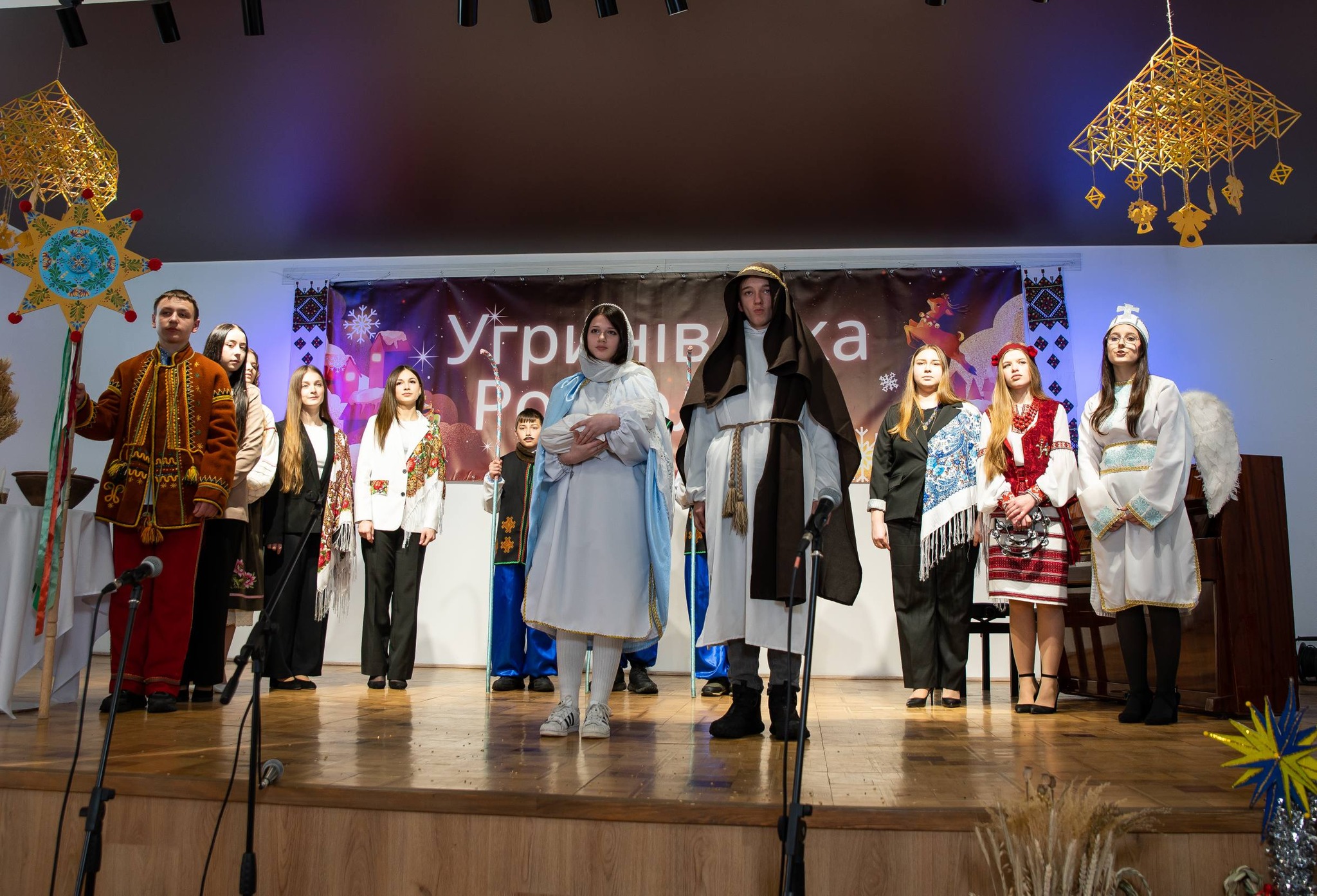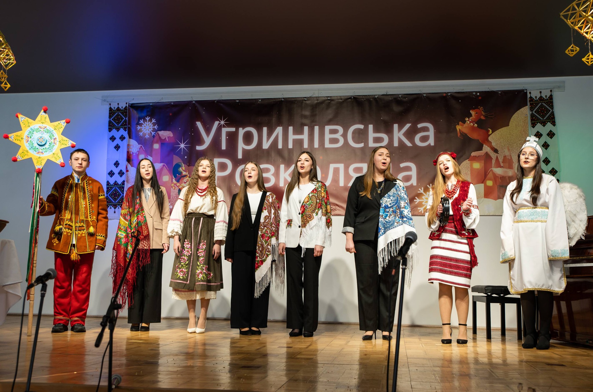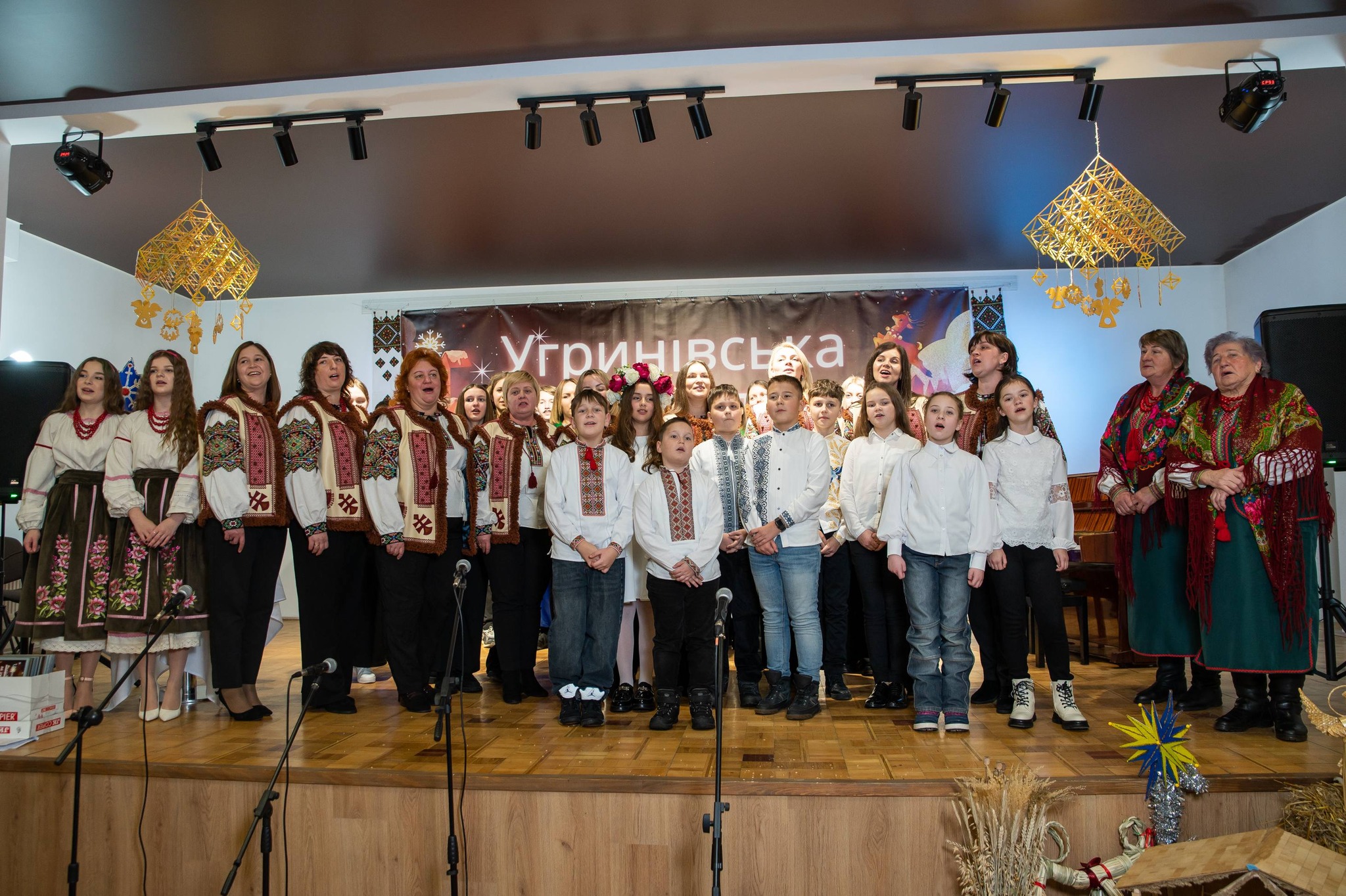 Цього дійства не було б, якби не спільні цінності, праця, натхнення багатьох-багатьох людей: організаторів, учасників, глядачів. Шлях від ідеї до втілення завжди сповнений оригінальних творчих рішень. Світло – слово, яке стало знаковим цієї зими для всієї України. Ми всі потерпаємо через відсутність світла (електричного), водночас відкриваємо в собі спроможності нести “інше” світло. Бо світло – це не лише про електрику, світло – це про вчинки, про справи, про єдність у Коляді. Світло Вифлеємської зорі було цього дня в Угринівська дитяча школа мистецтв, бо його принесли всі: ним ділились і ним раділи. Серед гостей – Andriy Yavorskyy, обласний депутат і наша незмінна підтримка (музичне обладнання, придбане за вашого сприяння, допомогло сьогодні звучати усім). Отож, подяки для отців Михайло Залеський , Роман Боярський , Олега Зелеського, Роман Влашин (ваші слова дали натхнення колядувати); ведучим Божена Дзендзик та Настя Орихівська (неперевершені, одним словом); Роману Пушко (за різдвяних павуків-сценічну декорацію); бібліотекарці Марія Друк (за дідухів), Оля Савчук (за декорування залу), Наталія Панчук (за родинну вишивку та оргмоменти), заступнику голови Олег Чечіль (за можливість мати електроенергію попри вимкнення). Учасники, подяка ВАМ за гучну Коляду/Щедрівку/Віншівку: етно фольк-гурт “Шурдин” (ваші трембіти, цимбали та коляди розкрили красу Гуцульщини), гурт ADORO (акапельне звучання Різдва від вас- то справжнє мистецтво, геніально), Алінка Жага (виконала особливо трепетні символічні колядки), хор і вокальний колектив школи мистецтв, керівник Галина Дубровська, акомпонемент Юля Шатрова (тішимося їх академічним звучанням), Угринівський Ліцей, керівники Оксана Максимів, Оксана Мандзюк, Оксана Скобель (від дошкільнят і до випускників, які прекрасні костюми!, які талановиті актори й вокалісти), Угринівська гімназія (коли колядує увесь педагогічний колектив – це надихає, а талановита Наталія Невзорова продовжує), церковний хор парафії Св. Архистратига Михаїла с. Угринів (багатоголосе величальне колядування, керівник Галина Дубровська, дякуємо), хор “Благовіст парафії Пресвятої Трійці с. Клузів (дякуємо за піднесене, дзвінке, неймовірне звучання від вас, керівник Лілія Глушко), вертепне дійство від угринівської молоді, керівник Христя Зорійчук (від костюмів до вокалу, все прекрасно), вертеп від катехитичної школи “Крила”, керівник о. Роман Влашин (ваша інтерпретація Різдва Христового була дуже автентичною), талановиті Анна Шкварок, Надія Савчій, Юля Тарас , Вікторія Надіївська (“Щедрик” звучав інструментально й вокально завдяки вам), Зоряна Грушецька (прегарне виконання дуже відомої композиції), голосисті Єлизавета Ленюк та Богдан Тачинський (ваша композиція була щирою й мелодійною), наш улюблений аматорський колектив “Золотий вік”, керівник Христя Зорійчук, (за збереження народних мотивів колядування, за гідний приклад для молоді, дякуємо щиро), вокальний колектив с. Угринів “Співочі серця”, керівник Галина Дубровська (неймовірне звучання та виконання, як фінальний акорд дійства). У завершальному слові сільський голова Мирослав ВІВЧАРЕНКО подякував усім за участь та внесок в Угринівську розколяду. Подяками для учасників підсумувала дійство начальниця відділу освіти й культури Тетяна ТАРАС.